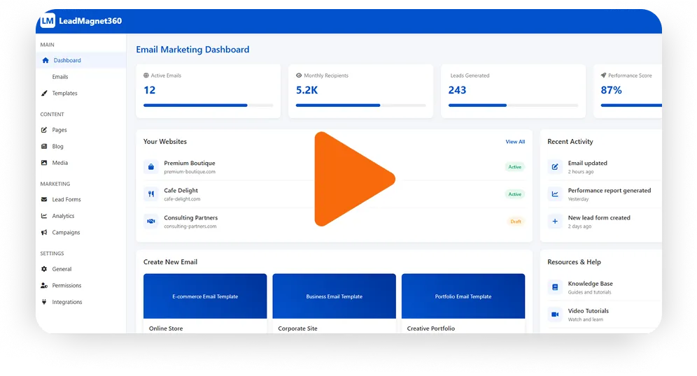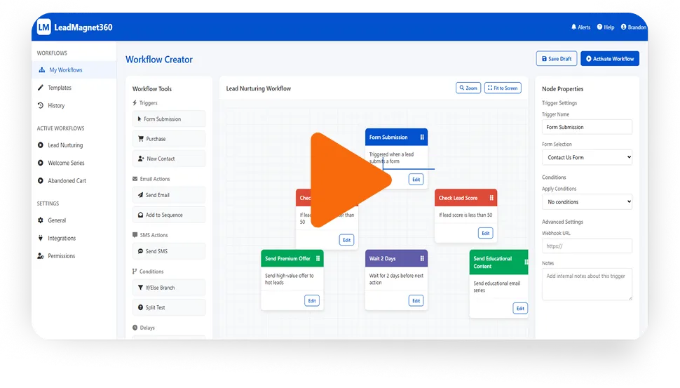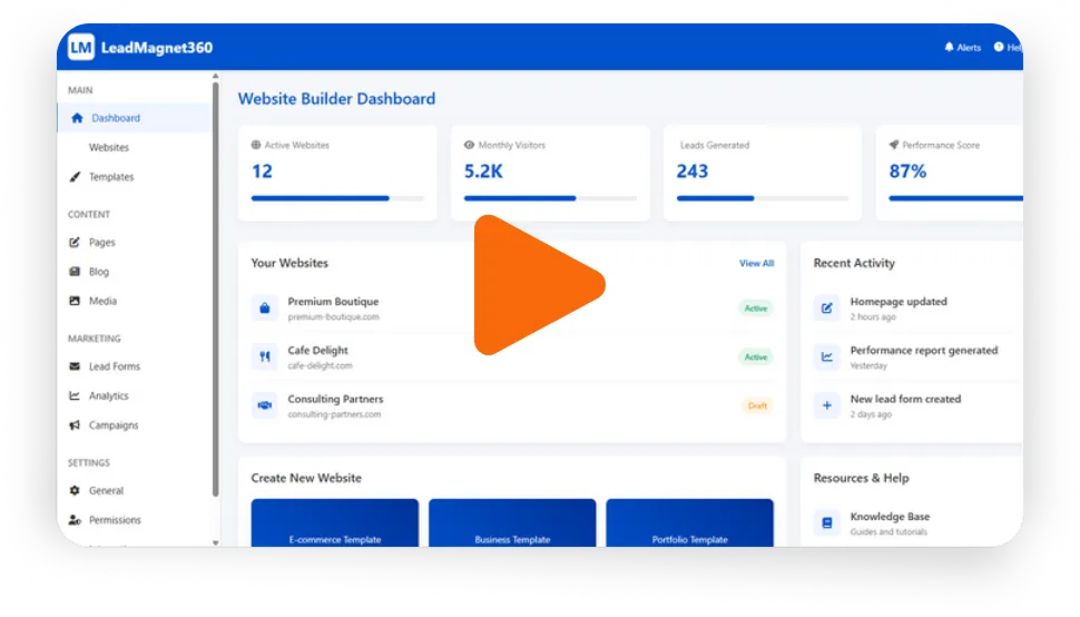 With LeadManager360, you can build a professional website featuring custom menus, maps, forms, and surveys. You'll also get unlimited websites, landing pages, and A/B split-test funnels. Everything you need from web hosting to SSL certificates, is all in one place.